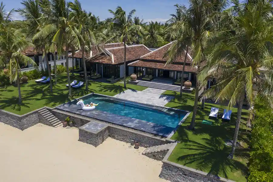 Réparti sur 35 hectares et surplombant la plage de Ha My dans la province centrale de Quang Nam, il dispose de 100 villas et de huit salles de spa séparées, toutes conçues dans un style traditionnel vietnamien.