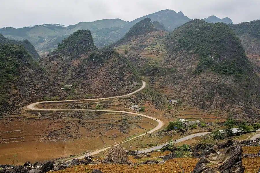 Mountain road through the Dong Van Karst Plateau in Ha Giang, Vietnam. Photo: Mathieu Arnaudet