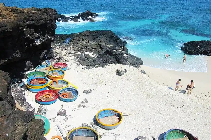 Une fois arrivés à Ly Son, les voyageurs peuvent se lancer dans une variété d’activités passionnantes. Ils peuvent commencer par explorer les champs de lave, les formations rocheuses étonnantes et les grottes volcaniques qui témoignent de l’histoire géologique unique de l’île. Les amoureux de l’histoire apprécieront les visites des temples et pagodes historiques qui racontent des récits anciens. Les plages paisibles, aux eaux cristallines, offrent une atmosphère sereine pour se détendre et admirer les magnifiques couchers de soleil sur l’océan.
