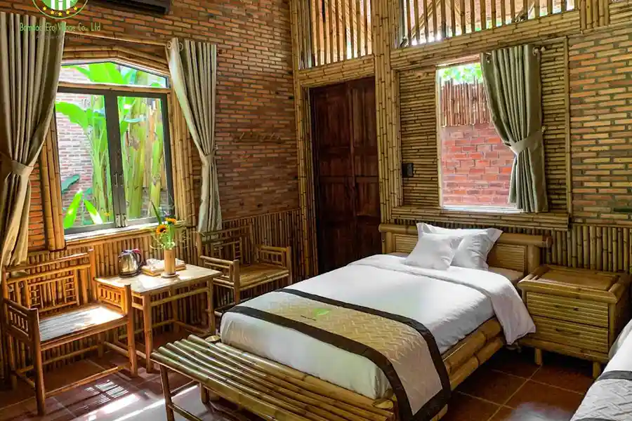 Intérieur d’un bungalow de Bamboo Eco Village.