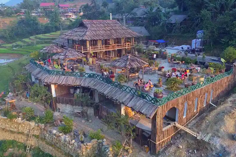 Le café attenant, perché au-dessus des rizières en terrasse, offre une vue imprenable sur la vallée de Ta Van : l’endroit rêvé pour siroter un thé au gingembre ou un café vietnamien tout en contemplant les montagnes environnantes.